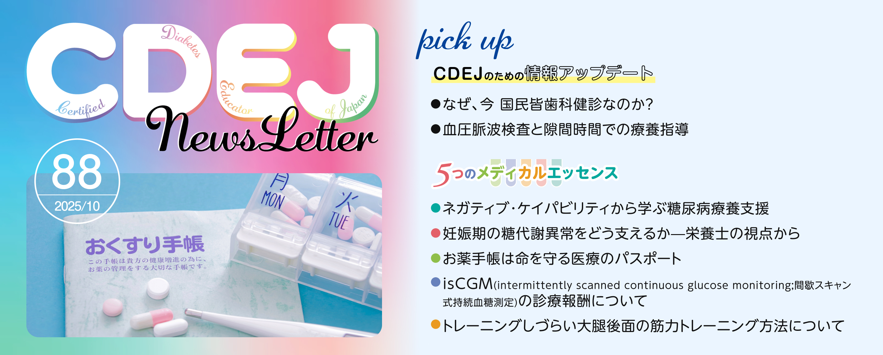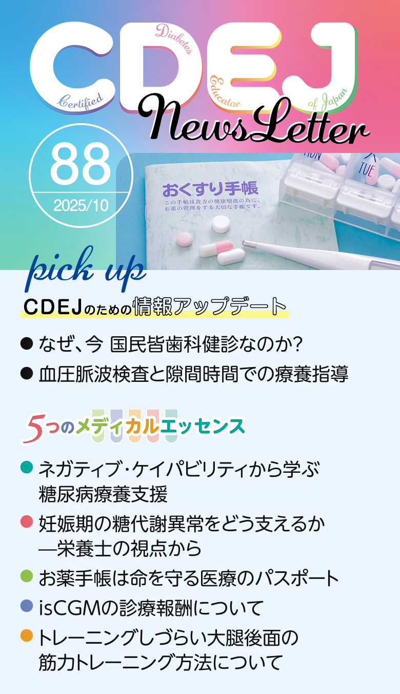CDEJは糖尿病医療のあらゆる領域で、リーダーシップを発揮できるよう、患者の思い、悩みに耳を傾けています。